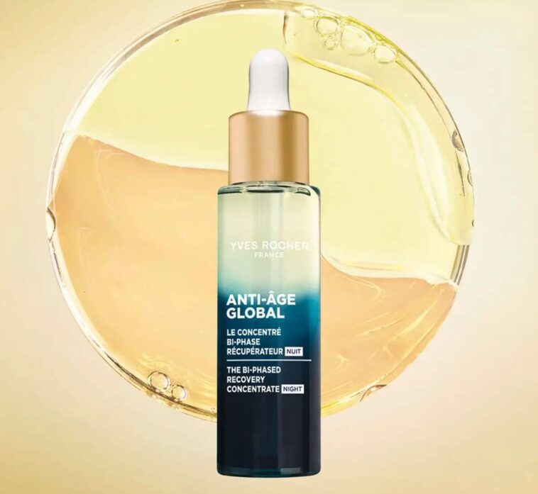 Grâce à son Concentré Bi-Phase Récupérateur de Nuit, Yves Rocher propose une formule qui cible l’ensemble des signes visibles de fatigue. Concentré en Achillée Dorée, un actif d’origine végétale réputé pour sa puissante action antioxydante, supérieure au resvératrol, ce sérum aide à atténuer les rides, à renforcer la fermeté et à estomper les traces de fatigue.