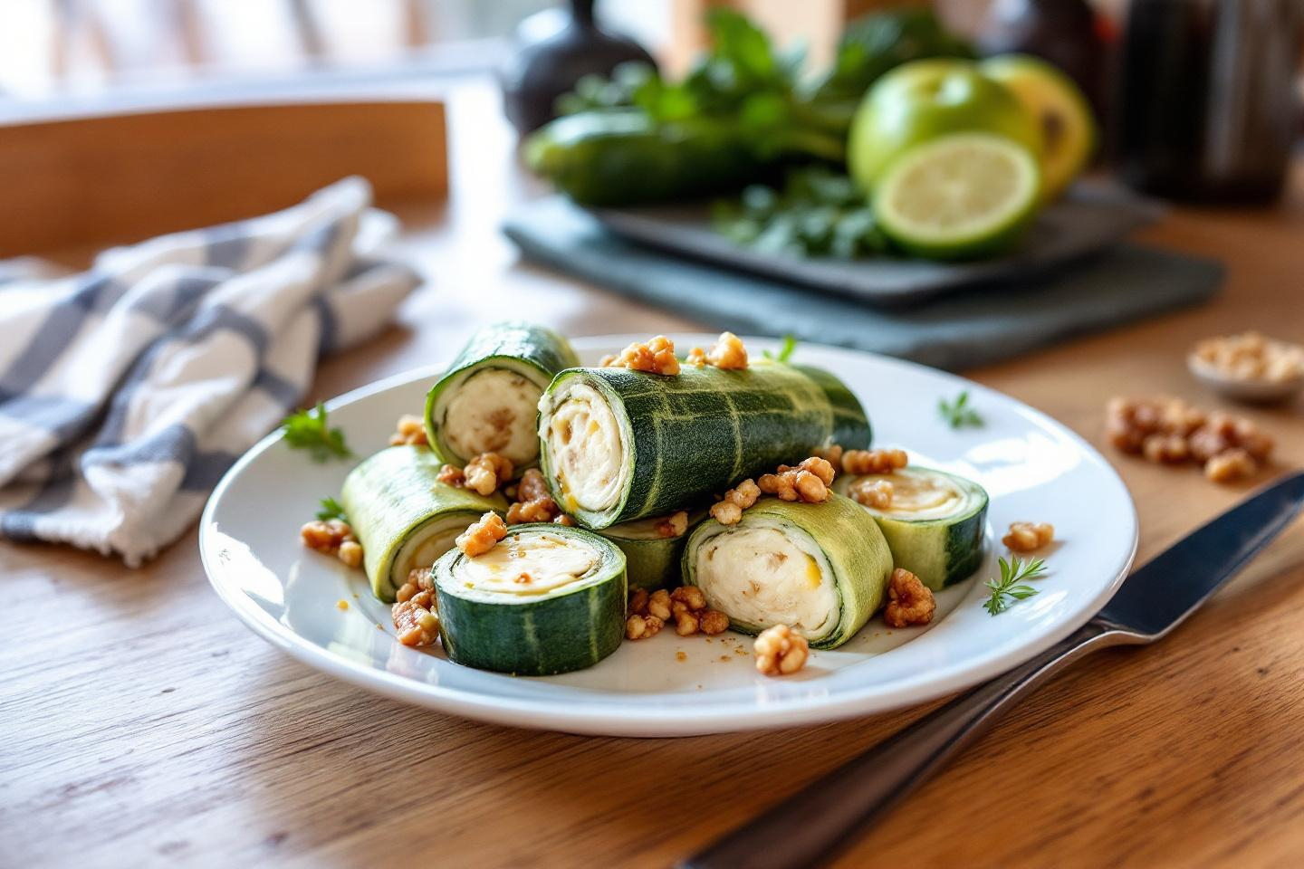 Roulés de courgette au chèvre frais et noix : l’entrée ultra maligne pour la santé et la gourmandise