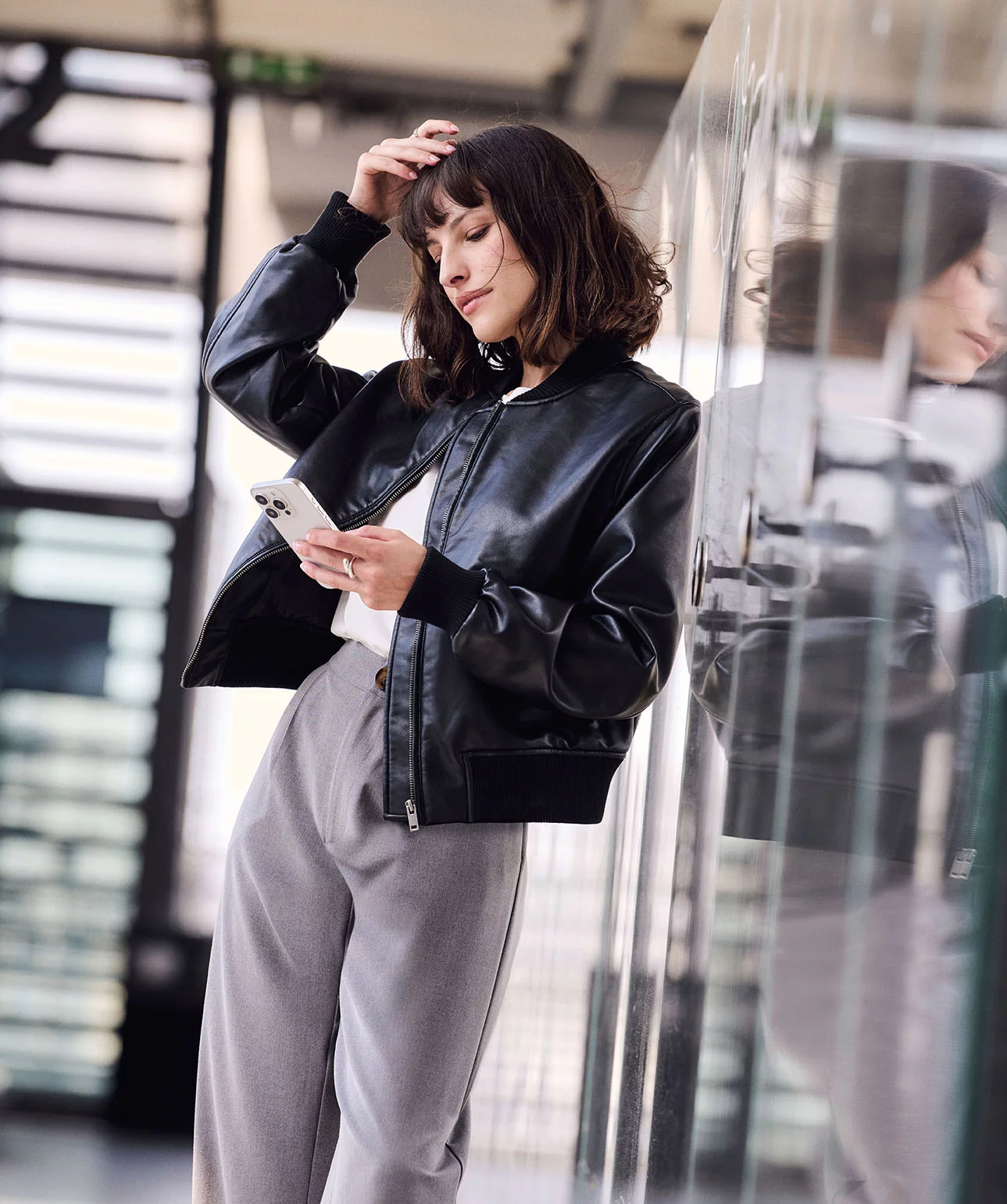 Le blouson court tendance en simili cuir noir passe à 19,99 € cette semaine chez Gémo