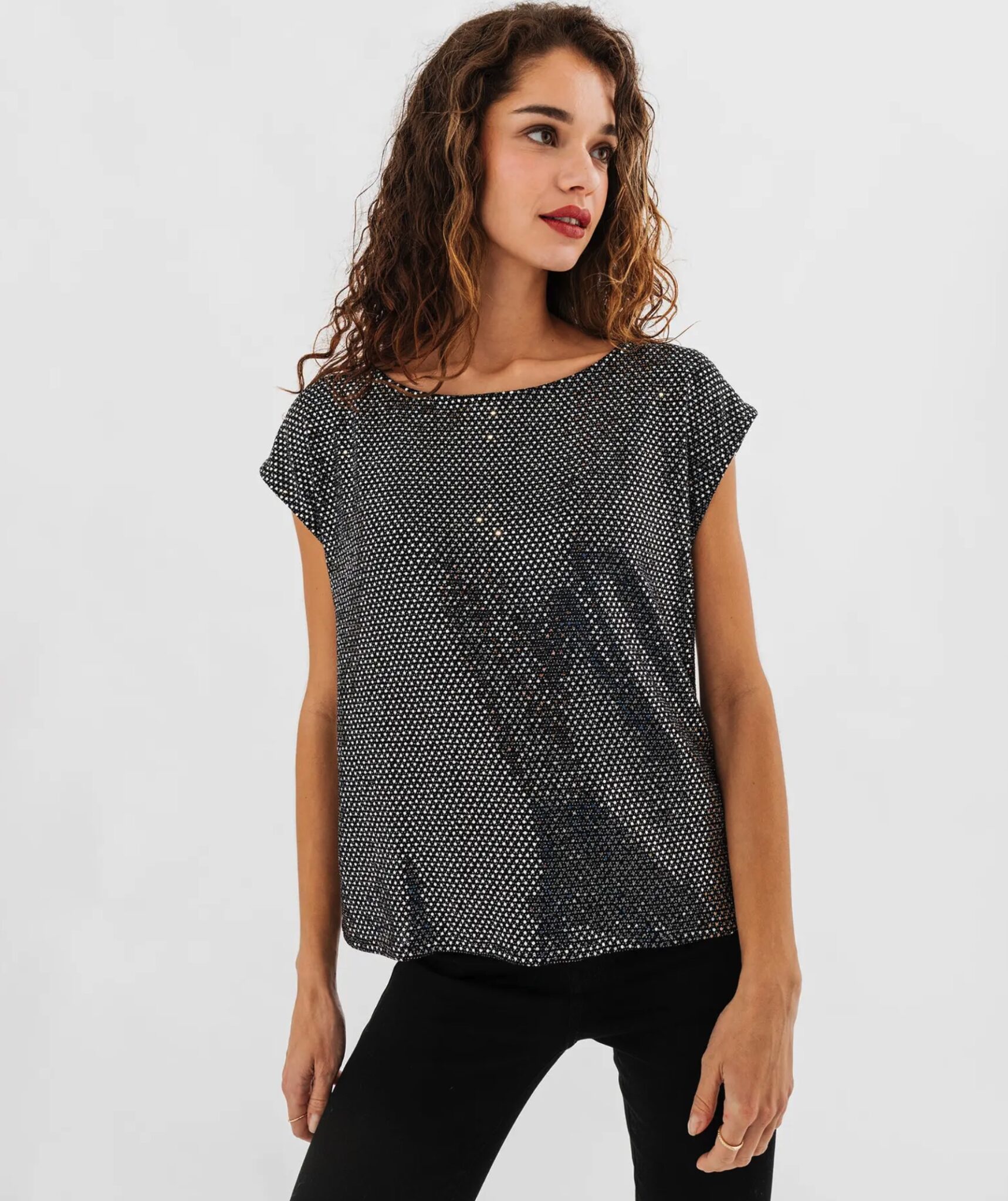 Le tee-shirt sans manches argenté à paillettes fait briller l’hiver : le modèle femme à 13 € chez Gémo cette semaine