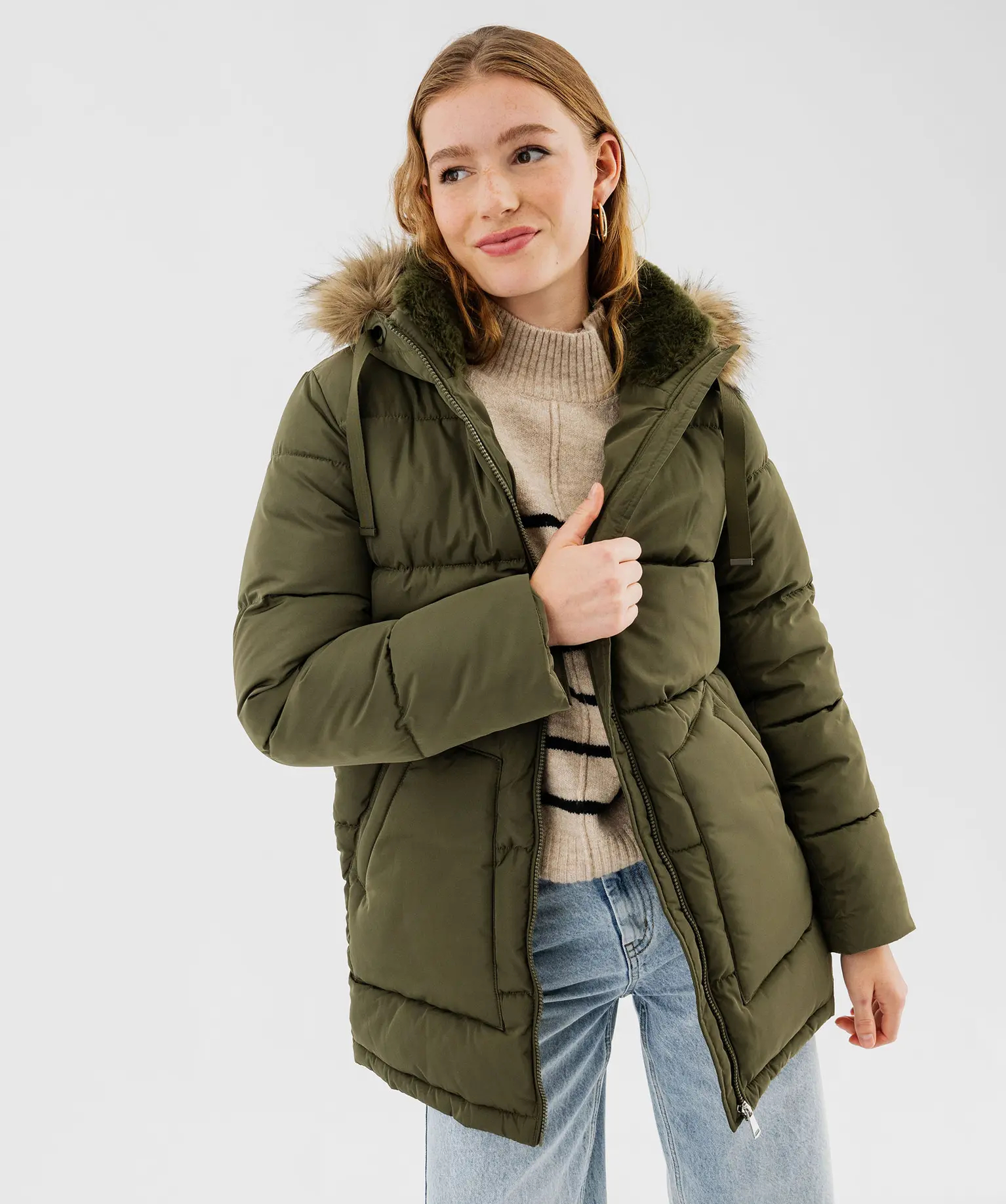 La pièce chaude qui cartonne cet hiver : le manteau matelassé à capuche kaki femme s’affiche à 59,99 € chez Gémo cette semaine