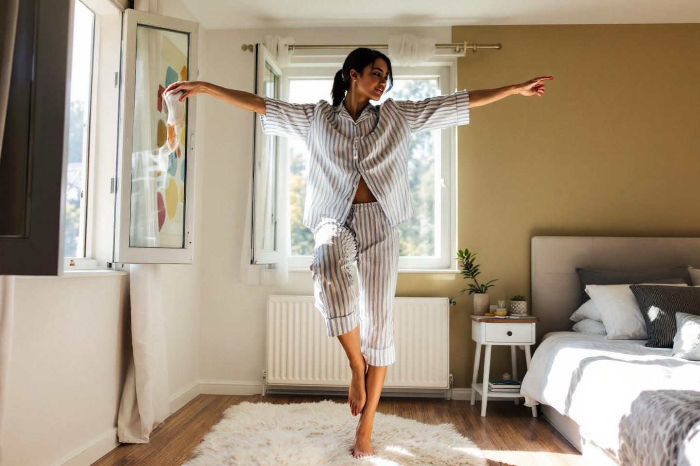 Ce mini-défi du matin relance circulation et tonus : tenez-vous sur un pied pour réveiller tout le corps sans effort