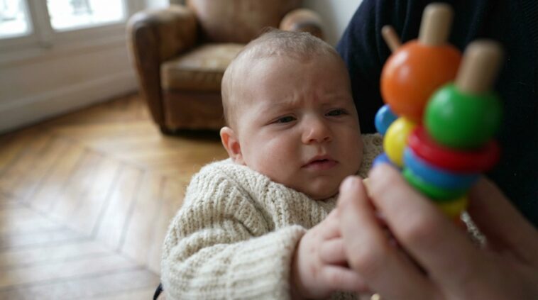 Le premier cap se situe autour des deux mois. À cet âge, un bébé doit commencer à fixer et à suivre un objet contrasté ou un visage qui se déplace doucement devant lui. L’absence de suivi du regard à 2 mois est un signal qui doit vous interpeller. Si son regard reste errant ou semble vide face à une stimulation lumineuse douce, ce n’est pas anodin.