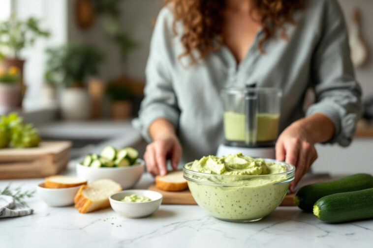 La vraie révolution dans la cuisine green de l’été ? Mixer la partie centrale de la courgette — graines et pulpe molle, habituellement jetées — pour en faire une purée végétale crémeuse, parfaite en tartinade. Cette astuce, relativement méconnue il y a peu, fait aujourd’hui parler d’elle dans tous les apéros créatifs et les ateliers zéro déchet. La texture veloutée, légèrement épaissie, rappelle celle du houmous tout en étant beaucoup plus digeste que certaines graines crues plus coriaces.
