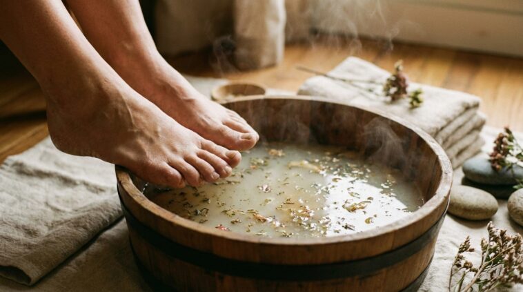 Avec le retour des beaux jours, les pieds sortent de l’ombre… et les talons rêches aussi. Sous les collants de l’hiver, la peau a eu le temps d’épaissir, souvent sans qu’on s’en rende compte, jusqu’à former ces zones dures qui accrochent les draps et ternissent l’allure des sandales. Bonne nouvelle : il existe un geste simple, économique et doux pour assouplir la corne avant qu’elle ne s’installe. Pas besoin de matériel compliqué ni de produits décapants. Un bain tiède bien dosé, avec deux ingrédients très courants du placard, peut déjà transformer la sensation sous le pied, à condition de respecter la durée et les bons gestes ensuite. L’objectif n’est pas de “tout enlever” en une fois, mais de retrouver une peau souple et confortable, durablement.