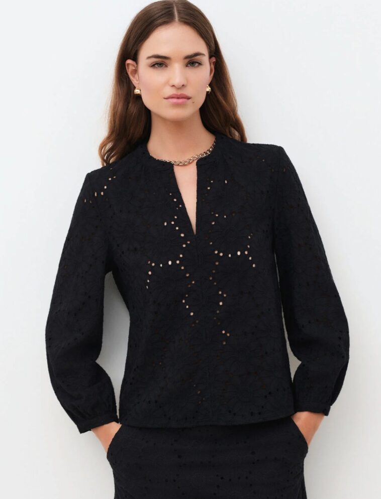 Il est rare de dénicher une pépite réunissant tous les critères astrologiques d’un bon karma vestimentaire, pourtant cette chemise relève le défi. Affiché à 90 €, ce modèle noir signé Caroll cumule les bons points : la fameuse dentelle ajourée pour le charme, une ligne droite bien pensée pour flatter la silhouette, et cette capacité unique à dissimuler subtilement la taille tout en garantissant un maintien raffiné.