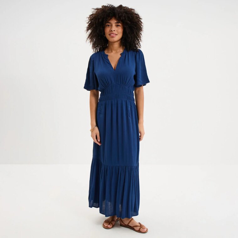 Il est grand temps de lever le voile sur cette affaire en or. Il s’agit tout simplement de la robe longue proposée à 25,99 euros sur la boutique en ligne La Halle. À ce tarif ultra-compétitif, selon les stocks disponibles, c’est une véritable aubaine pour renouveler son style sans culpabiliser.