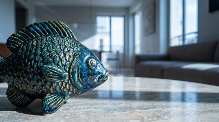Craquer pour une carafe en céramique, ce fameux modèle « glouglou » qui amuse tant enfants et invités, suffit à transformer la pièce. Placée sur une étagère en bois brut, elle devient l’élément phare qui attire immédiatement l’œil. Par la suite, ajouter un coussin aux motifs d’écailles stylisées sur le canapé introduit une douceur particulière grâce à ses formes courbes. Lorsque le poisson est décliné dans des matériaux nobles comme le verre recyclé ou la céramique artisanale, il s’intègre parfaitement dans une ambiance « slow life » et loin de tout kitsch.