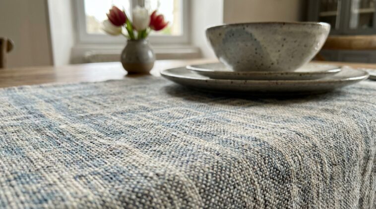 - Jouez sur les contrastes de vaisselle : Sur une nappe texturée comme la gaze de coton, optez pour de la céramique artisanale ou de la vaisselle en grès. La combinaison d’un tissu souple avec des matières brutes offre un équilibre visuel recherché par les stylistes déco.