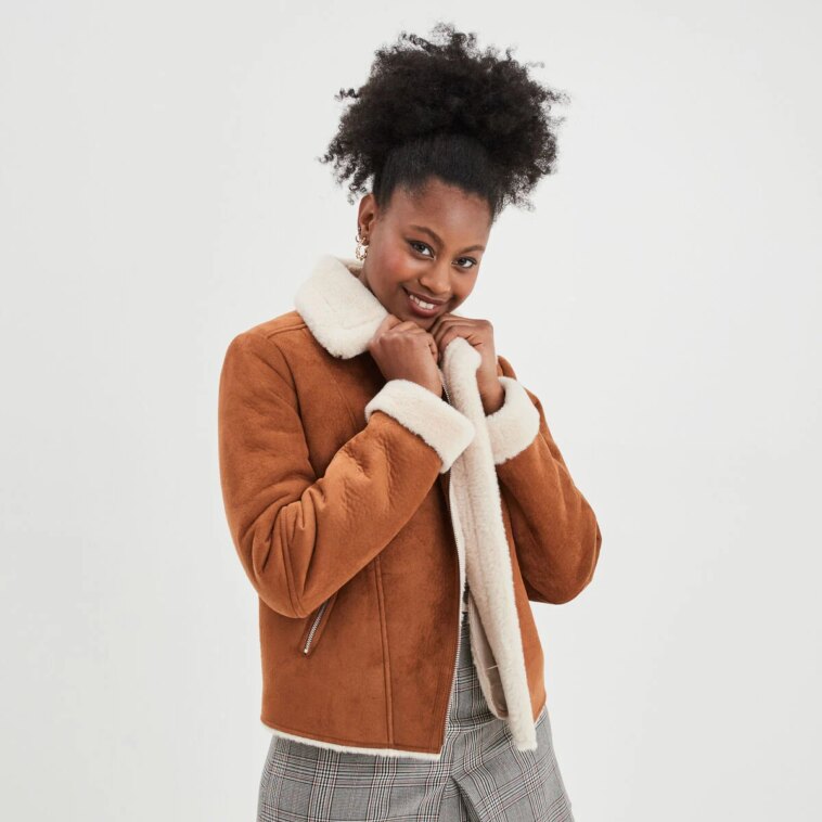 Avec les premiers redoux de mars, osez jouer le contraste. Associez ce blouson aviateur à une robe longue fluide ornée de motifs floraux. Le contraste entre la robustesse du blouson effet peau lainée et la délicatesse de la robe crée un look bohème-rock irrésistible. Voilà l’astuce pour adopter plus tôt vos tenues printanières tout en restant bien protégée du froid.