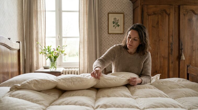 Une couette duvet bien entretenue peut durer longtemps, mais lorsqu’elle ne retrouve plus son volume malgré l’aération et le secouage, la perte de confort devient difficile à compenser uniquement avec des couches supplémentaires.