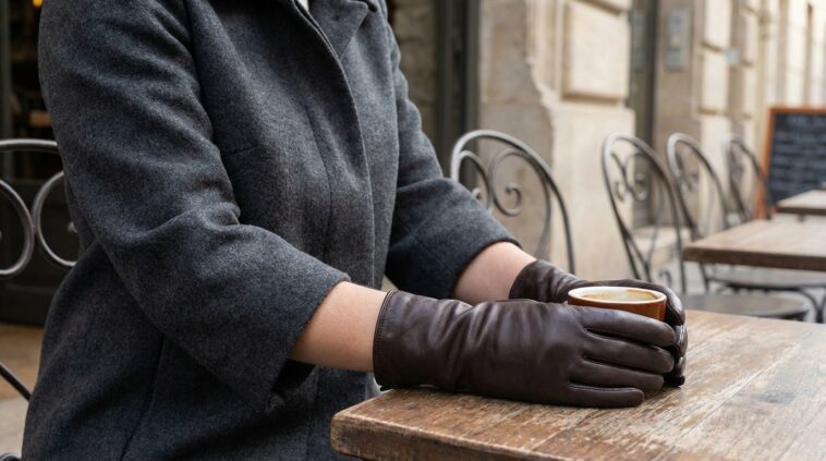 Avec un manteau ou une robe à manches trois-quarts, très prisés au printemps, le choix de la longueur du gant est déterminant. L’erreur fréquente est de préférer un modèle trop haut qui disparaît sous la manche. Pour prolonger la ligne du bras avec élégance, privilégiez le gant mi-long, mesurant environ 20 cm. Ce type de gant s’arrête juste avant le coude, assurant une transition fluide sans alourdir la silhouette.