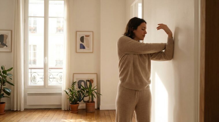 Maintenez la position durant 30 secondes en respirant profondément, puis relâchez. Changez de côté et répétez : deux séries pour chaque côté suffisent. En moins de deux minutes, l’amplitude respiratoire s’améliore et vous offrez à vos poumons davantage d’espace : une sensation qui se constate facilement, surtout en période de fatigue saisonnière où l’énergie se fait rare. Prendre ce temps pour soi, c’est déjà amorcer le regain de vitalité.