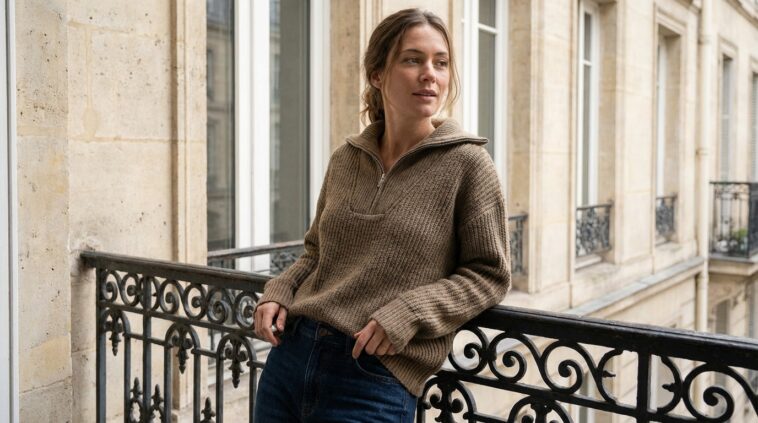 La mode célèbre le pratique avec ferveur ces jours-ci. Le pull avec col zippé incarne cette obsession pour les vêtements fonctionnels. On lui emprunte son aura brute et authentique. Cette allure de vêtement de travail séduit les amatrices d’une garde-robe simple et efficace. On l’adopte sans hésiter pour arpenter le pavé avec aplomb.
